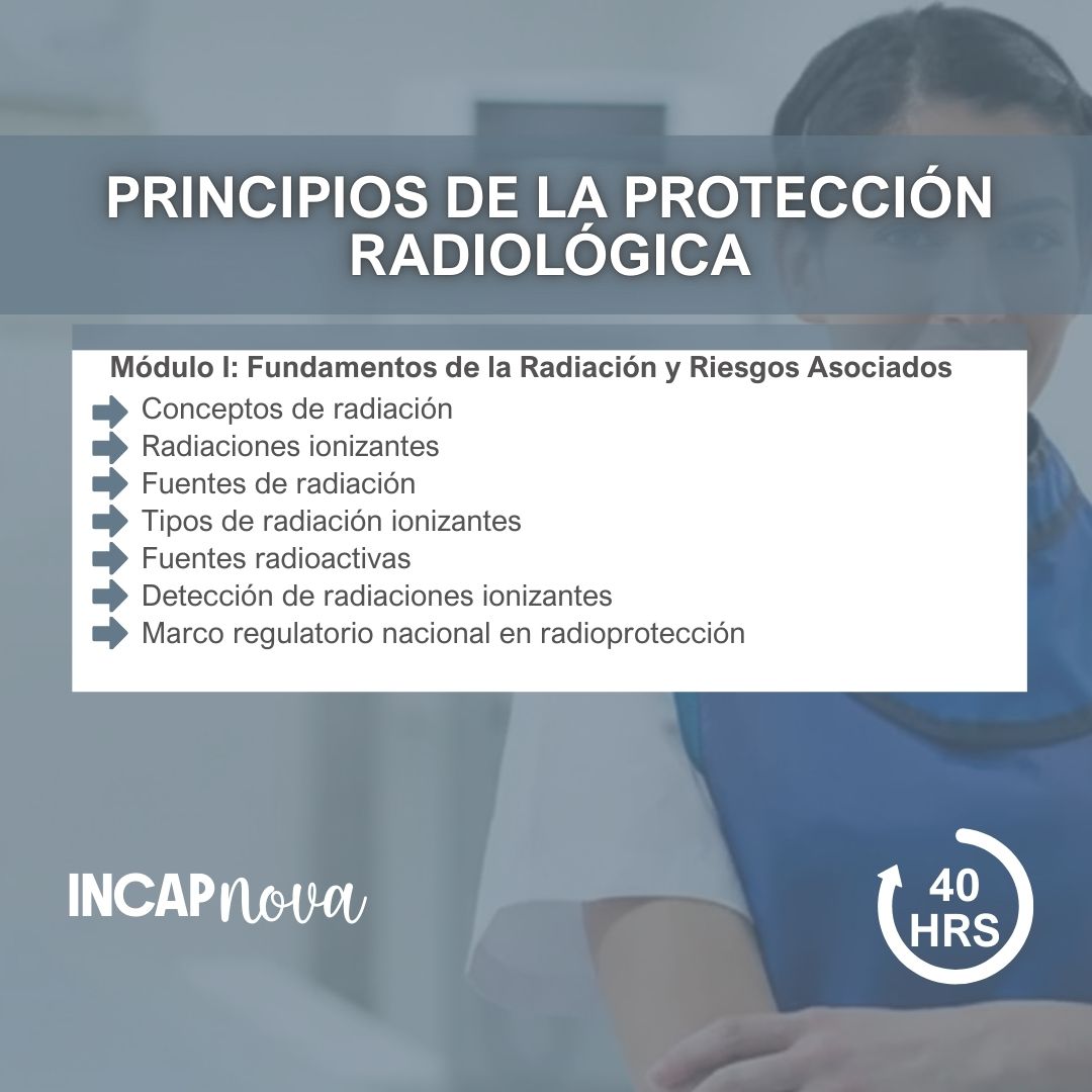 El curso permite comprender el marco general que regula el uso seguro de radiaciones ionizantes, promoviendo el cumplimiento normativo y la adopción de medidas preventivas acordes de la protección radiológica.
